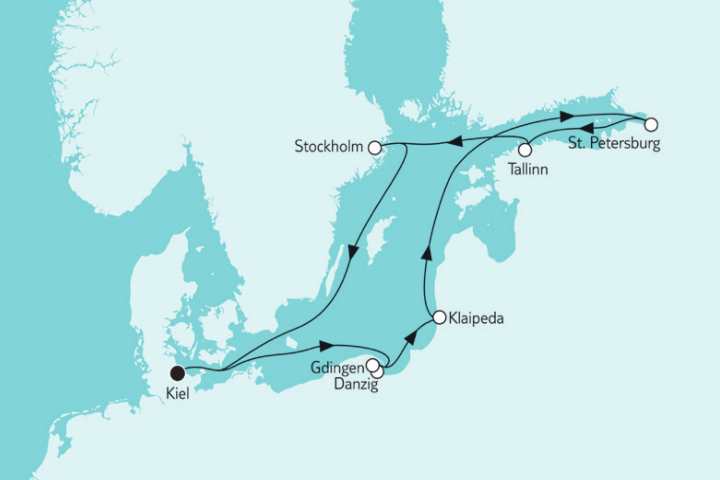 Erleben Sie Danzig, Klaipeda, Riga, Tallinn, St. Petersburg (2 Tage), Helsinki, Stockholm,...