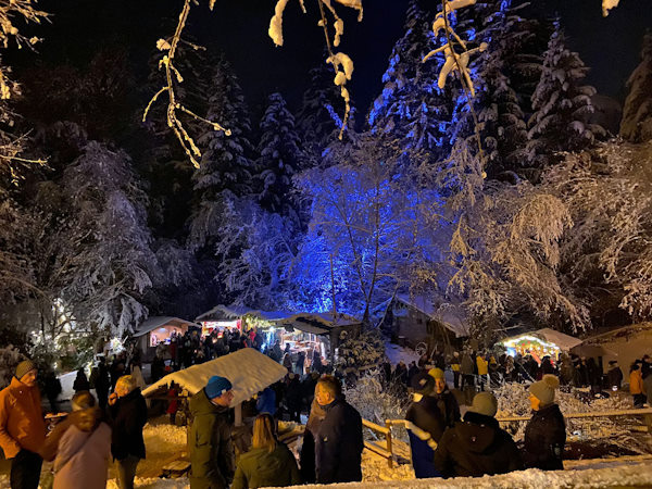 Mitten im Wald entsteht jedes Jahr aufs neue ein adventliches Dorf mit urigen Holzhütten und zauberhaften Ständen. Hunderte von Kerzenlichtern erhellen die Wege. Mit seiner einzigartigen Atmosphäre verzaubert die Waldweihnacht Besucher aus aller Ferne.